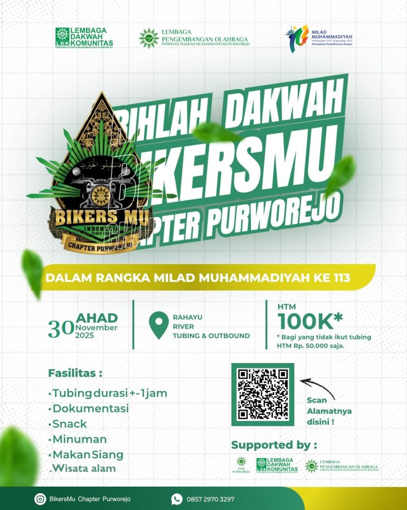 Home/Agenda/Rihlah Dakwah dan Pengukuhan BikersMU Chapter Purworejo – Ahad, 30 November 2025 Agenda Rihlah Dakwah dan Pengukuhan BikersMU Chapter Purworejo – Ahad, 30 November 2025 25 November 20250 144 Facebook X LinkedIn WhatsApp Telegram 25 November 20250 144 Facebook X LinkedIn WhatsApp Telegram Share Facebook X LinkedIn WhatsApp Telegram