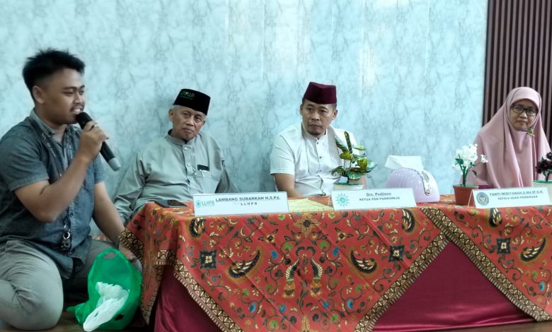 Kedatangan rombongan PDA Kabupaten Purworejo disambut dengan hangat oleh Kepala Seksi Pembinaan LPKA Kelas I Kutoarjo, Ibu Tanti Widiyanah, A.Md.IP., S.H., beserta jajarannya. Kegiatan tersebut juga dihadiri oleh Ketua Pimpinan Daerah Muhammadiyah (PDM) Kabupaten Purworejo, Drs. Pudjiono, serta pemateri Bapak Lambang Subarkah H., S.Pd, perwakilan LLHPB PDA Kabupaten Purworejo yang juga merupakan Guru SD ‘Aisyiyah Unggulan Purworejo.